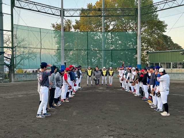 11月15日、毎年恒例のOB交流戦が開催されました。寒い中ではございましたが、現役さながらのプレーで熱戦が繰り広げられました。荒木監督もガチプレーで教え子と楽しんでいました。